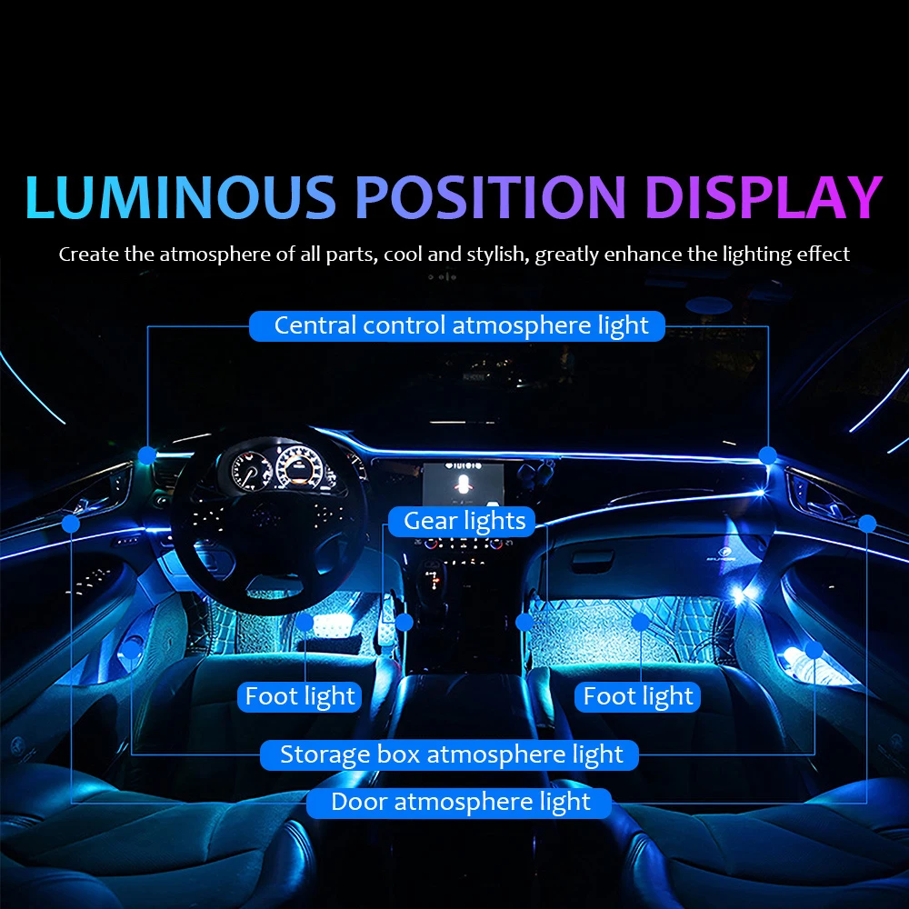 -Тип изделия: 9 в 1 (6 м волоконно-оптическая лента + 4 окружающих (ножной) светильник s + 5 светильник головки источника + Главный блок управления + 6 подсистем управления)