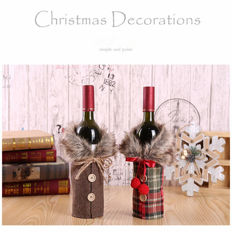 Рождественские украшения для дома, красная клетчатая ткань, серый льняной винный набор, крышка для бутылки вина, новый год 2022, рождественские подарки Navidad