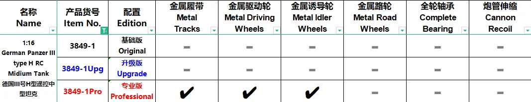 3, полностью металлические дорожные колеса, Торсионные прутья, лучшие пружины, поддерживающие более тяжелый вес.