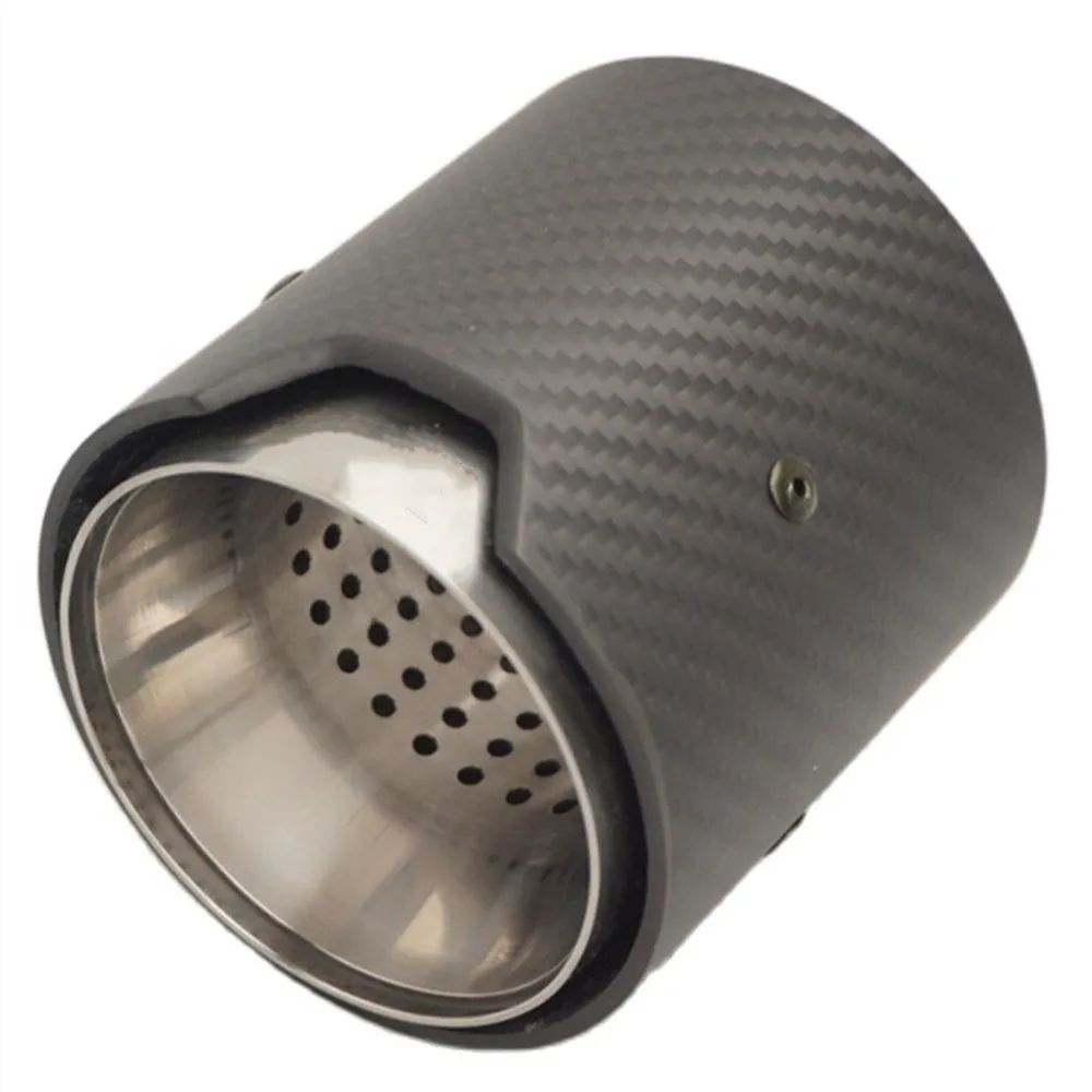 Параметры: Материал: высокое качество карбоновое волокно + SUS 304 Нержавеющая сталь Отделка: матовое углеродное волокно, серебро 304 Нержавеющая сталь на входе вариант: 60/63/67/70 мм на выходе: 93 мм (3,66 ") общая длина: 90 мм (3,54")