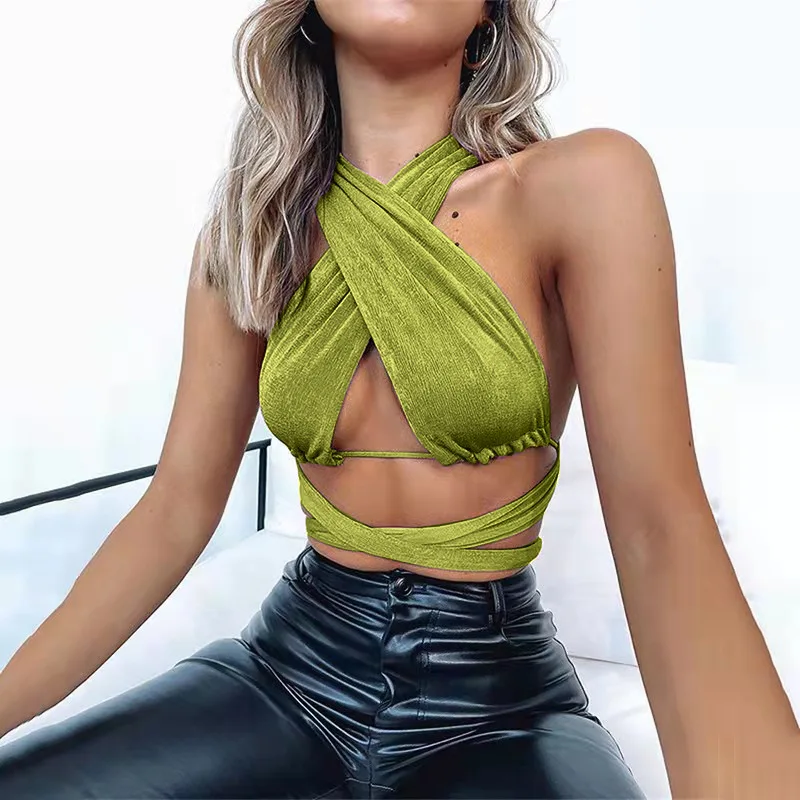 Отзывы о Meqeiss новые бандажные укороченные топы с вырезом на шее Модный укороченный топ без