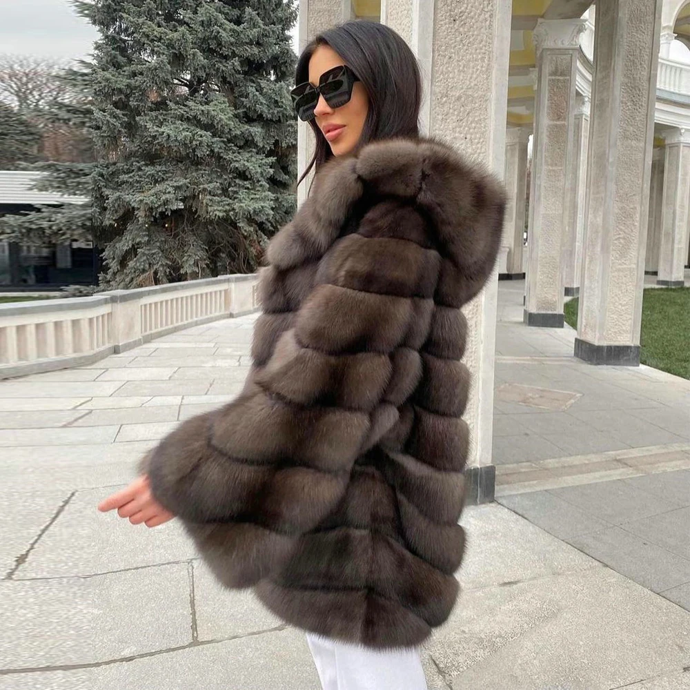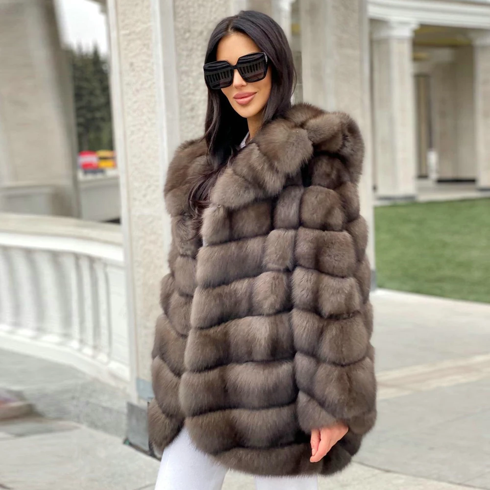 Отзывы о Женская куртка средней длины из натурального Лисьего меха с капюшоном пальто