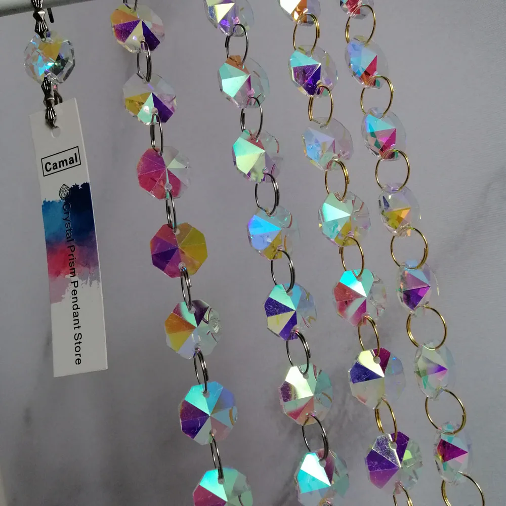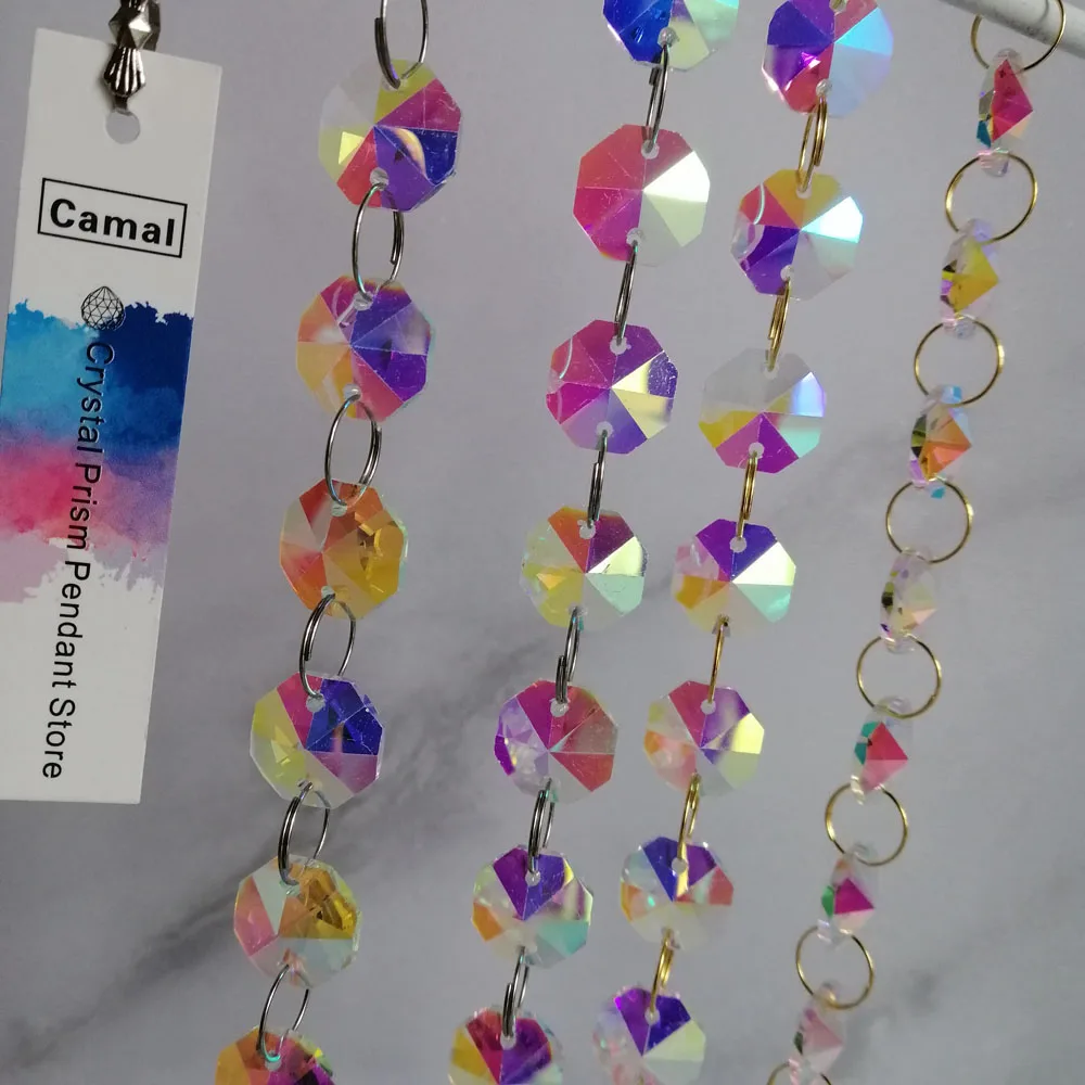 Camal 100 см/3,3 фута (хромированное/Золотое кольцо) AB Цвет 14 мм хрустальные Восьмиугольные бусины цепочка Гирлянда Люстра Лампа Часть занавеска ремесло орнамент Рождественская елка висячая