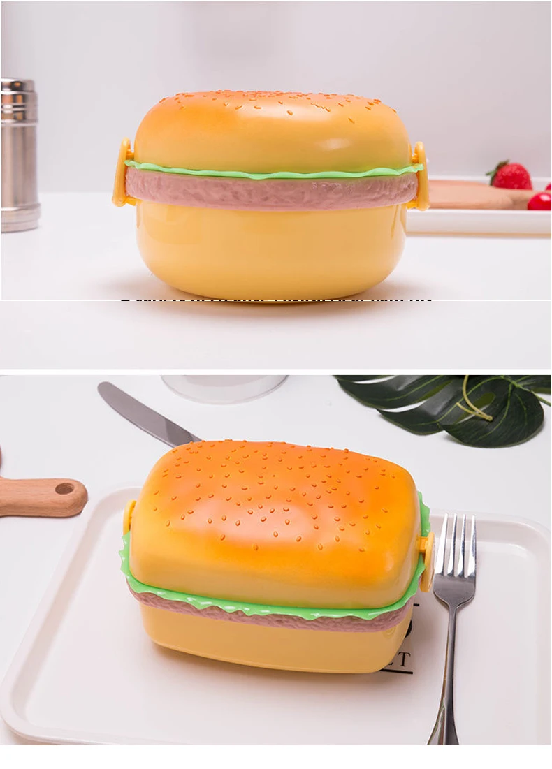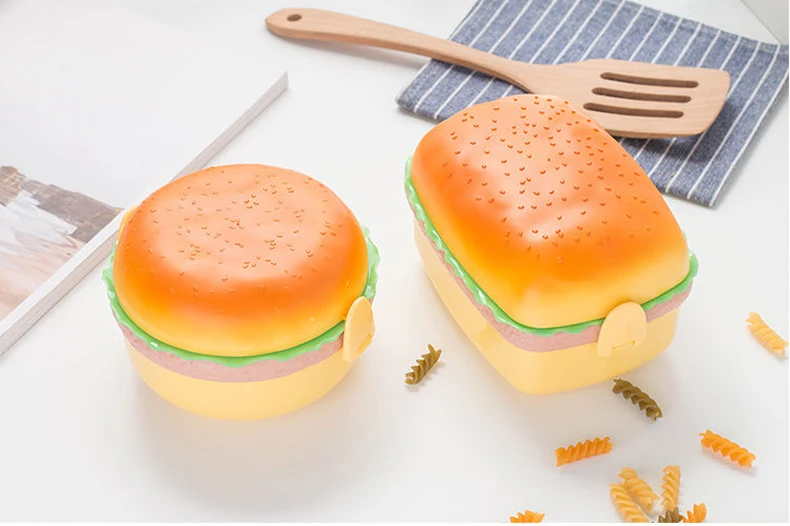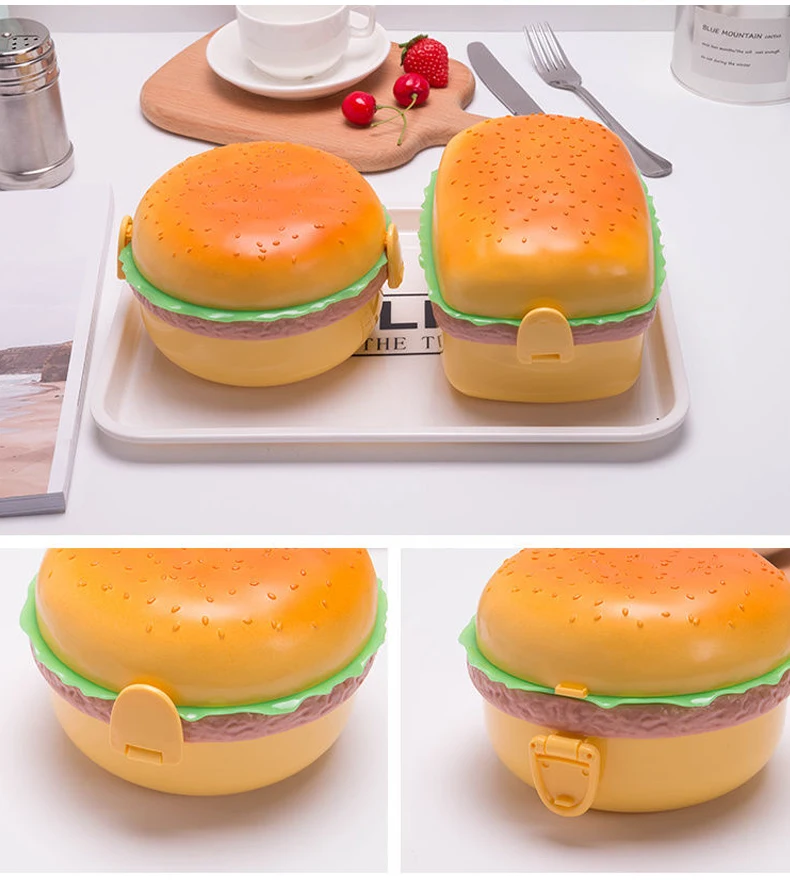 Милый мультяшный Ланч-бокс для гамбургеров, реалистичное мастерство, многослойный дизайн, посуда, вызывает аппетит.