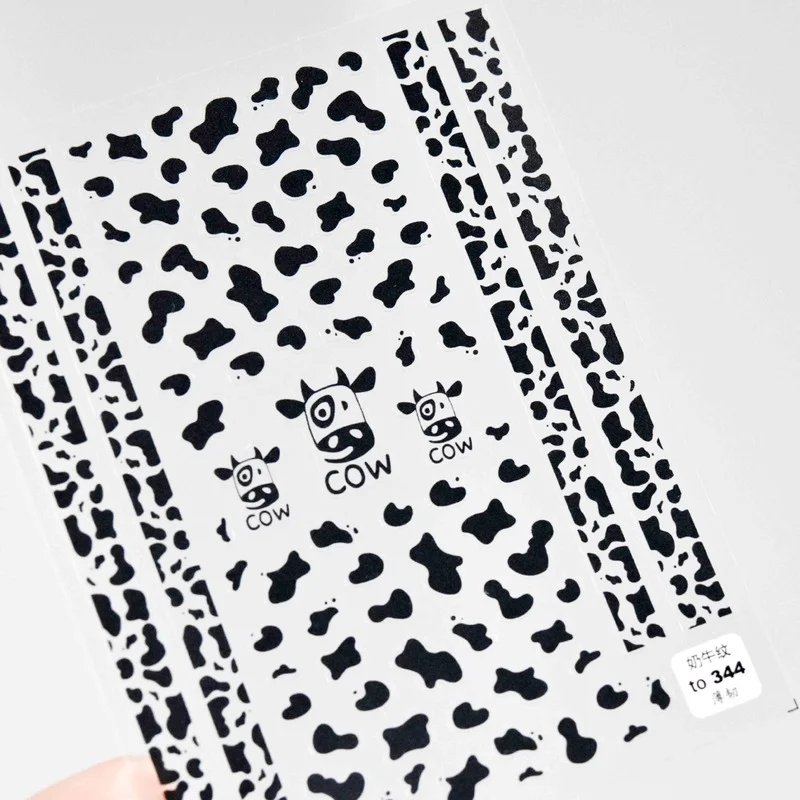 Отзывы о Наклейка для ногтей с коровьей полосой рисунок 5D черные и белые смешанные пятна