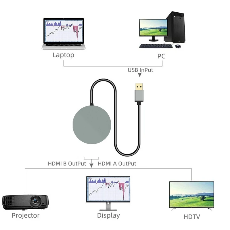 High-definition resolution output: This USB HDMI adapter can simultaneously output two 1080P@60Hz resolution high-definition pictures, and it can also output a 3.5mm stereo.