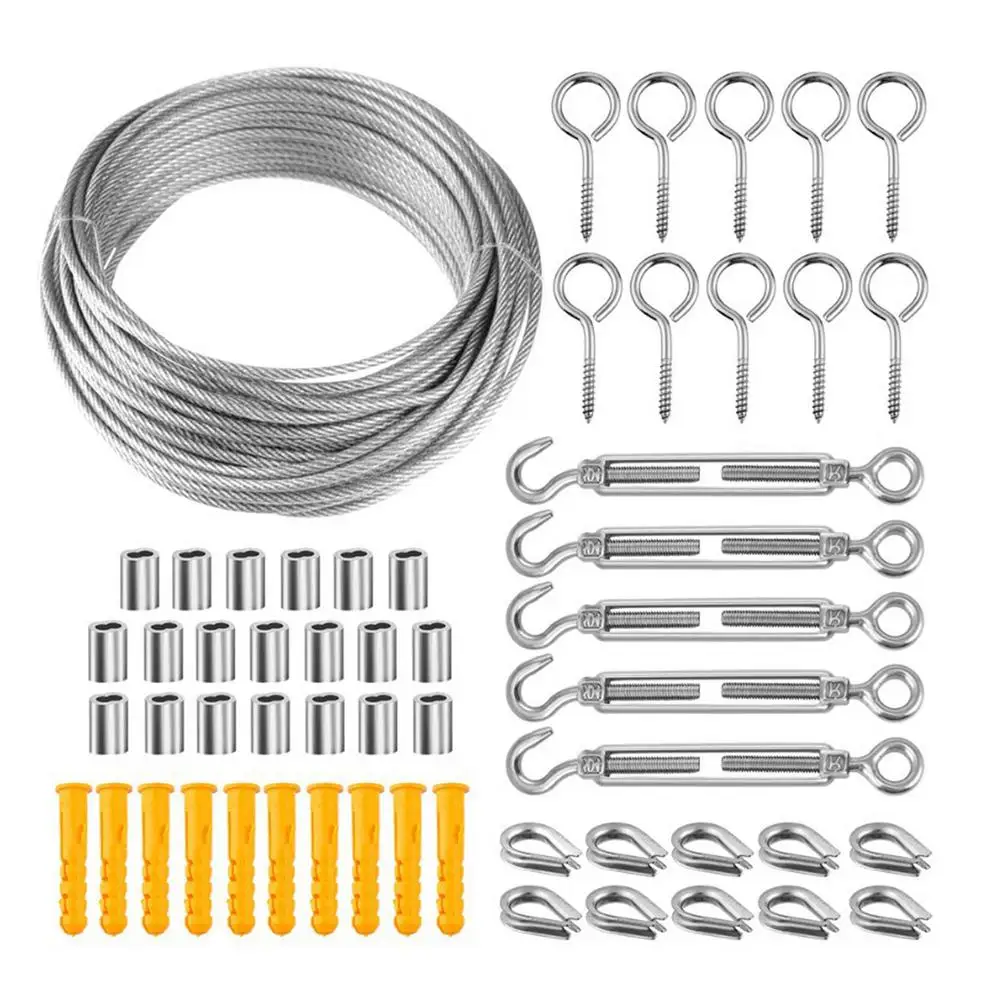 Провода отлично подходят для навесов, сада, рождественских украшений, наружного освещения, использования канатов для палаток на открытом воздухе, мостовых кабельных пандусов, глобальных огней, моечной линии и отображения изображений.