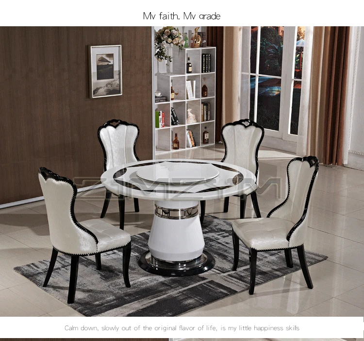 Отзывы о Marble dining table round turntable modern simple household set and chair combination large | Мебель