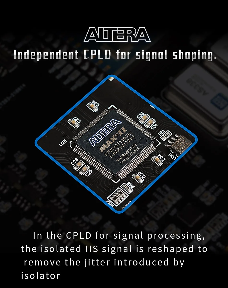 В CPLD для обработки сигнала изолированный IIS сигнал изменяется, чтобы удалить дрожание, введенное изолятором