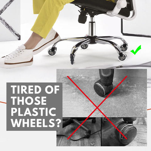 Все офисные и компьютерные стулья оснащены дешевыми черными пластиковыми колесами от производителей.Пластиковые колеса шумны, легко ломаются и царапают ваш пол.