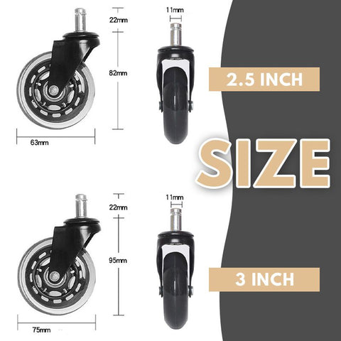 В отличие от пластиковых колесиков, эти высококачественные Мягкие колеса из полиуретана вызываютНе повреждает пол любого типа.Эти колеса прослужат дольше, чем ваши средние колесики для офисного кресла.