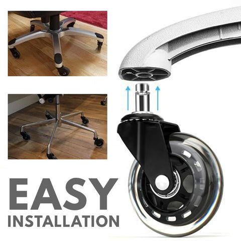 Эти универсальные колеса безопасны дляИспользуется на дереве, твердой древесине, плитке, ковре, ламинате, виниле, бамбуке и других полах.Больше не шумит. Никаких царапин и следов.