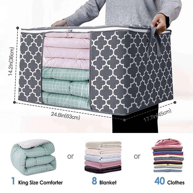 [Большая емкость] емкость для хранения составляет 100 л, подходит для одеял, одеял, подушек, плюшевых игрушек, курток или другой одежды. Храните предметы в организованном виде, гарантируя отсутствие пыли и грязи.