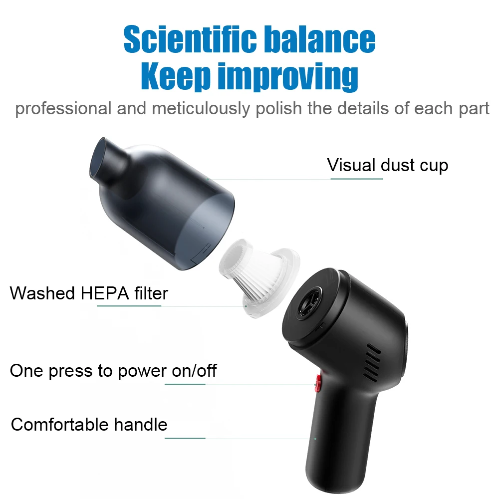 - Многофункциональное использование: ручной пылесос в папке, подходящий размер для ручной работы в качестве настольного пылесоса/автомобильного пылесоса/ручного пылесоса.