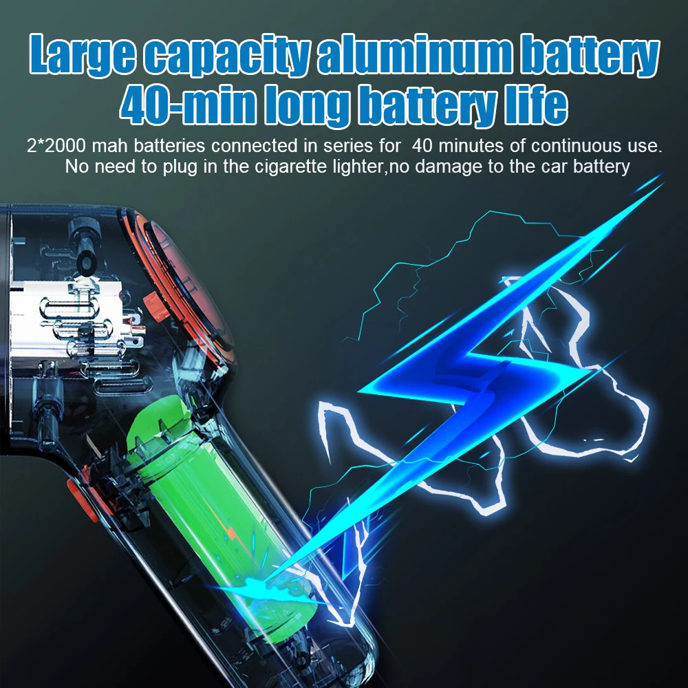 - 4000 мА Встроенный аккумулятор: усовершенствованная емкость аккумулятора больше и безопаснее. Он может работать непрерывно около 30 минут в полностью заряженном состоянии, заряжается от автомобильного зарядного устройства или настенного зарядного устройства дома. Не беспокойтесь о питании в любом месте.