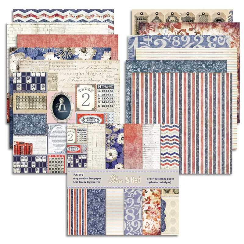 Отзывы о Бумага для рукоделия в стиле ретро 24 листа 6 дюймов красная и синяя - купить по