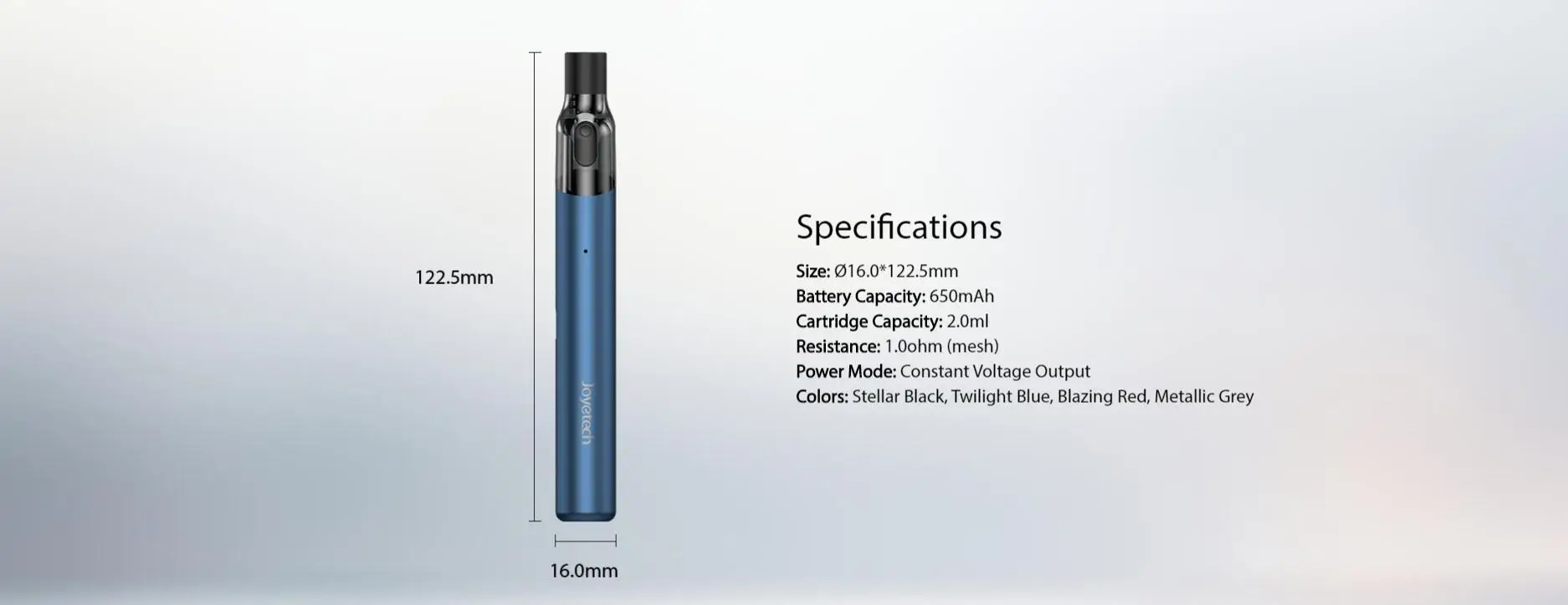 Легкий внешний вид Joyetech eGo Air Kit напоминает настоящую сигарету и предназначен исключительно для вейпинга MTL. Тщательно подобранный для мундштук, он выбирает два варианта, которые сохраняют 510 мундштук и фильтр сверху, полагаясь на автоматическую ингаляцию. В первую очередь, это подчеркивает аромат во рту и рекомендует более высокую концентрацию никотина. EGo Air вмещает емкость объемом 2 мл и легко заправляется путем открытия силиконовой вилки сбоку. Потребляет e-juice и использует 1,0ohm сетку катушки для равномерного нагрева. Он обеспечивает длительное восстановление вкуса во рту. Питание от встроенного аккумулятора емкостью 650 мА · ч и было обещано заряжать в течение 1 часа полностью, что приводит к длительной работе.