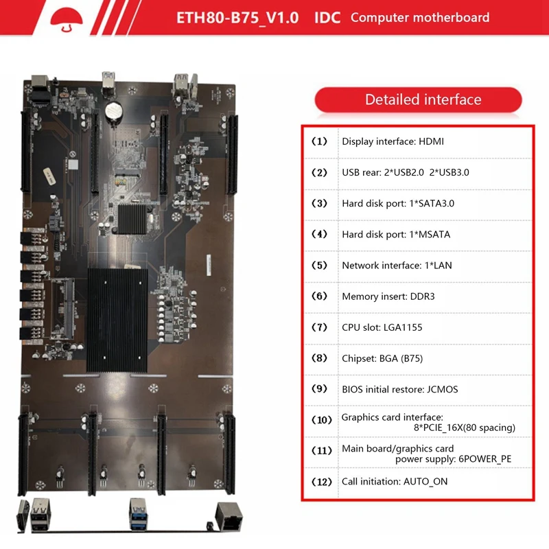 Отзывы о Материнская плата ETH80 B75 для майнинга BTC + Процессор I3 2100 вентилятор охлаждения 8xpcie