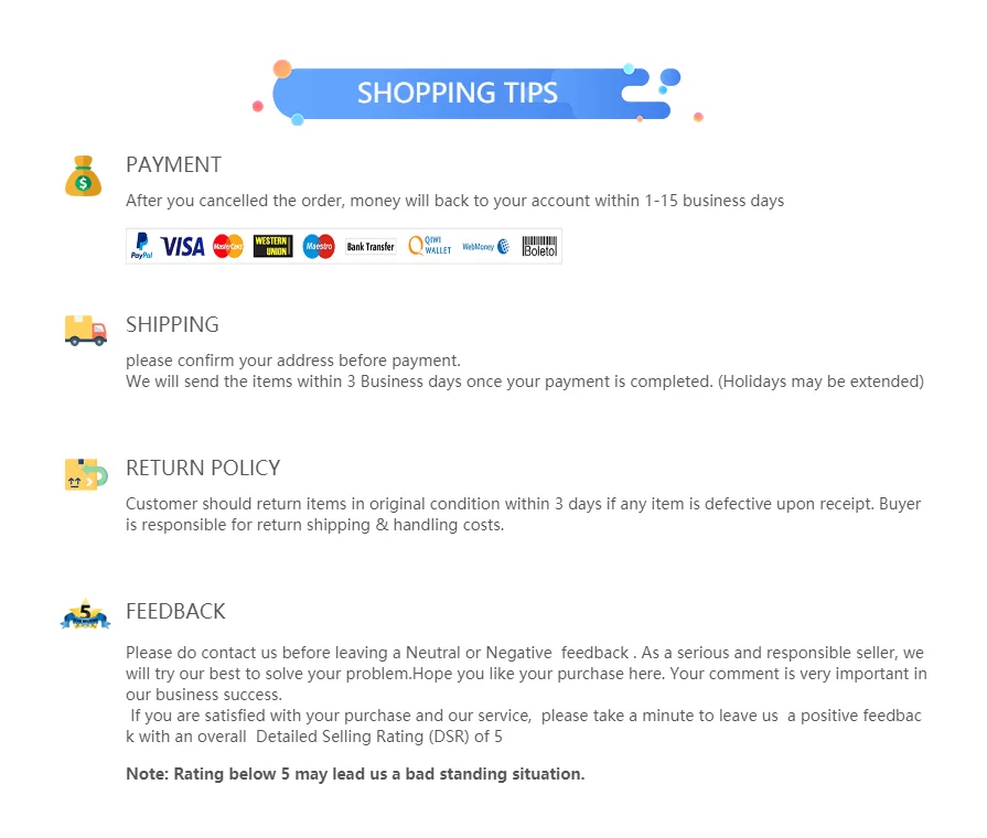 3. Из-за длительной доставки товар может быть поврежден при транспортировке, если товар поврежден, пожалуйста, свяжитесь с нами, прежде чем оставить отзывы, спасибо за понимание.