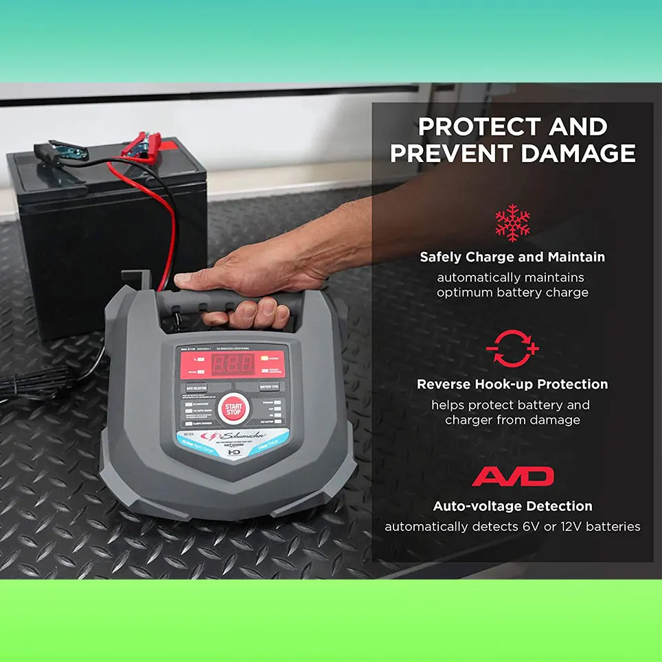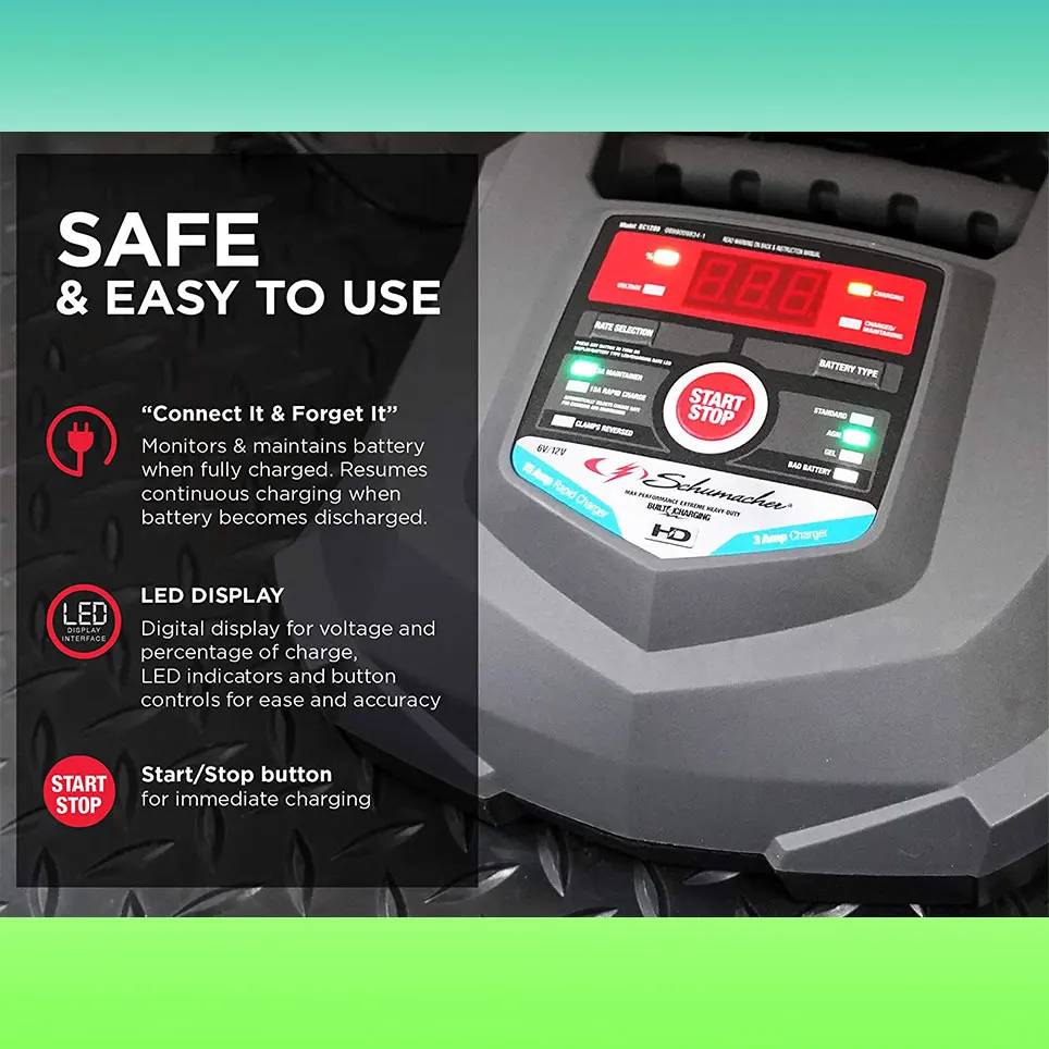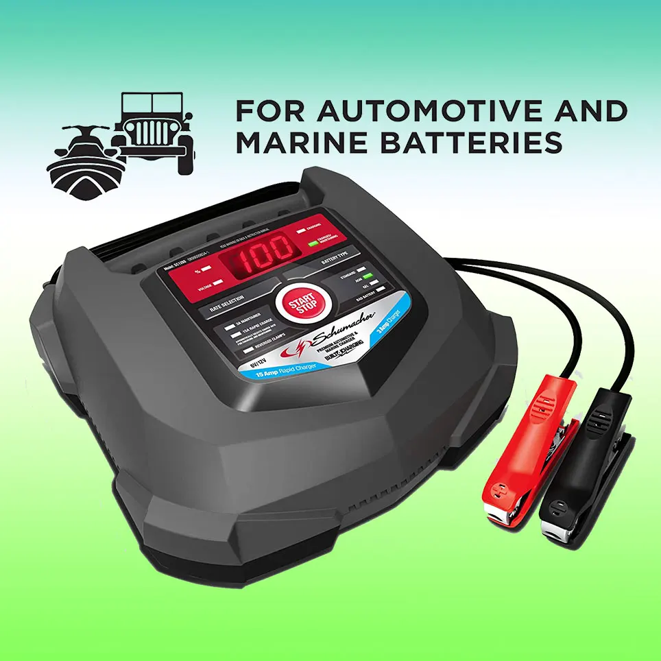 Зарядное устройство и устройство Schumacher SC1280-отличный выбор для автомобильных и морских аккумуляторов. Микропроцессор автоматически регулирует скорость тока и имеет многоступенчатую зарядку, чтобы продлить срок службы батареи. Включая автоматическое обнаружение напряжения, светодиодный дисплей, индикатор-светильник и простое управление кнопками, простота в использовании, а также защиту от обратного крючка, чтобы зарядное устройство не могло работать при смене зажимов. Schu Eco Energy отвечает самым высоким промышленным стандартам. Совместим со стандартными батареями, AGM и батареями глубокого цикла.