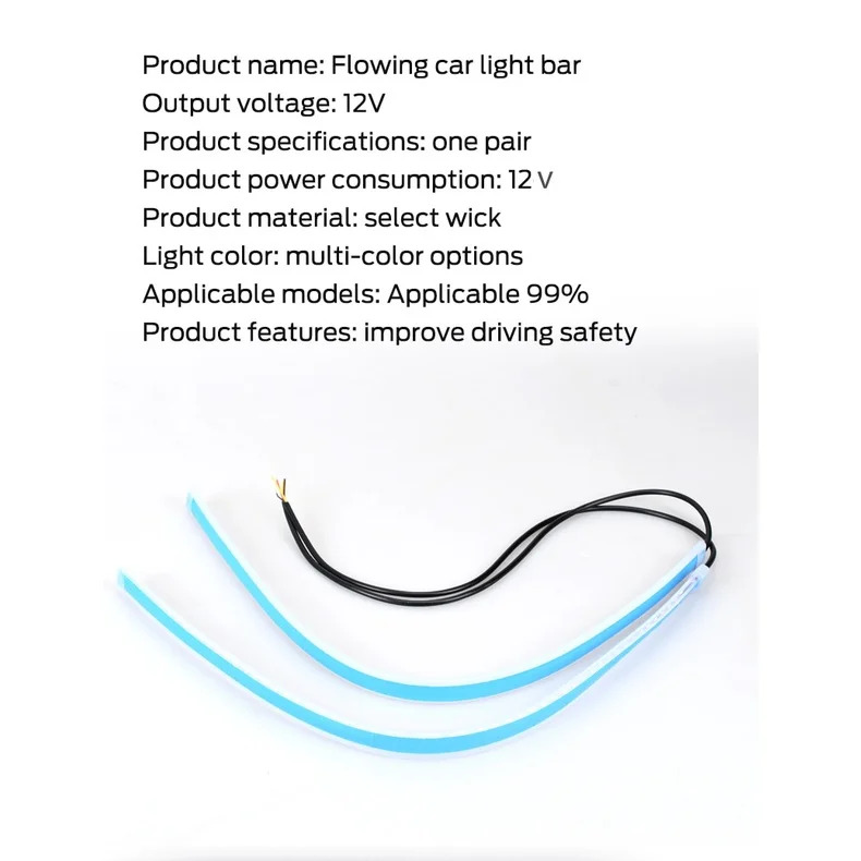 Modname = ckeditorХарактеристика: Название продукта: светодиодный автомобиль дневного светаМатериал: силикон/светодиодныйВходное напряжение: 12 ВПодходит: Универсальный для всех автомобилейХарактеристики: водонепроницаемый, плавный поворотРабочая температура: -40 ~ 50 градусов ЦельсияСветильник толщина: 0,4 смСветильник Размеры: 30 см/45 см/60 см Цвет:Белый-желтый поток/синий-желтый поток/ледяной синий-желтый поток/Красный-желтый поток/розовый-желтый поток Ангельские глазки, головной светильник поворотный светильник.Красный провод для белый светильник, желтый провод для желтый светильник, черный провод для отрицательного провода. Установка1. Наклейте на внешнюю фару2. Проводное соединение:Красный провод: + 12 В/ACC, всегда при вожденииЧерный провод: - GND / ground (отрицательный источник питания)Желтый провод: подключение к сигналу поворота (+) Посылка: 2 шт.