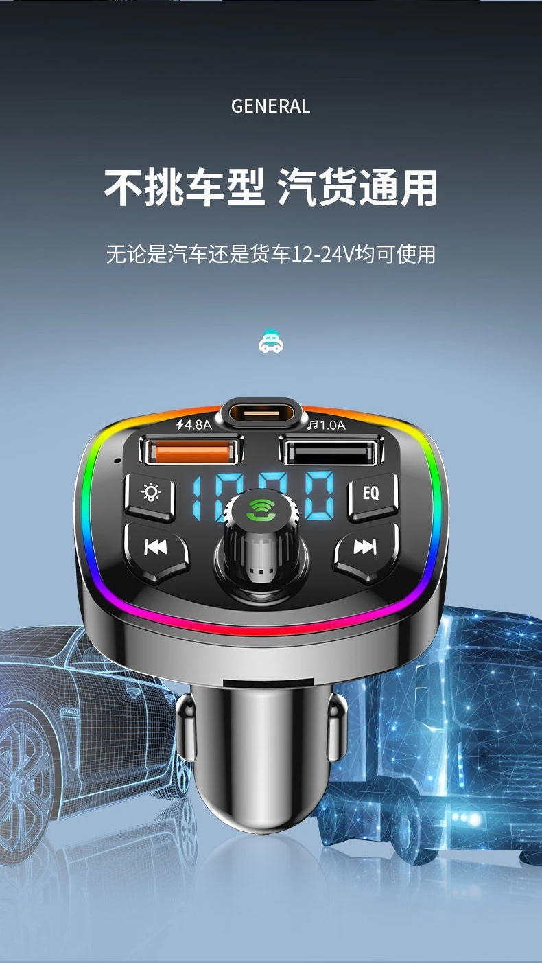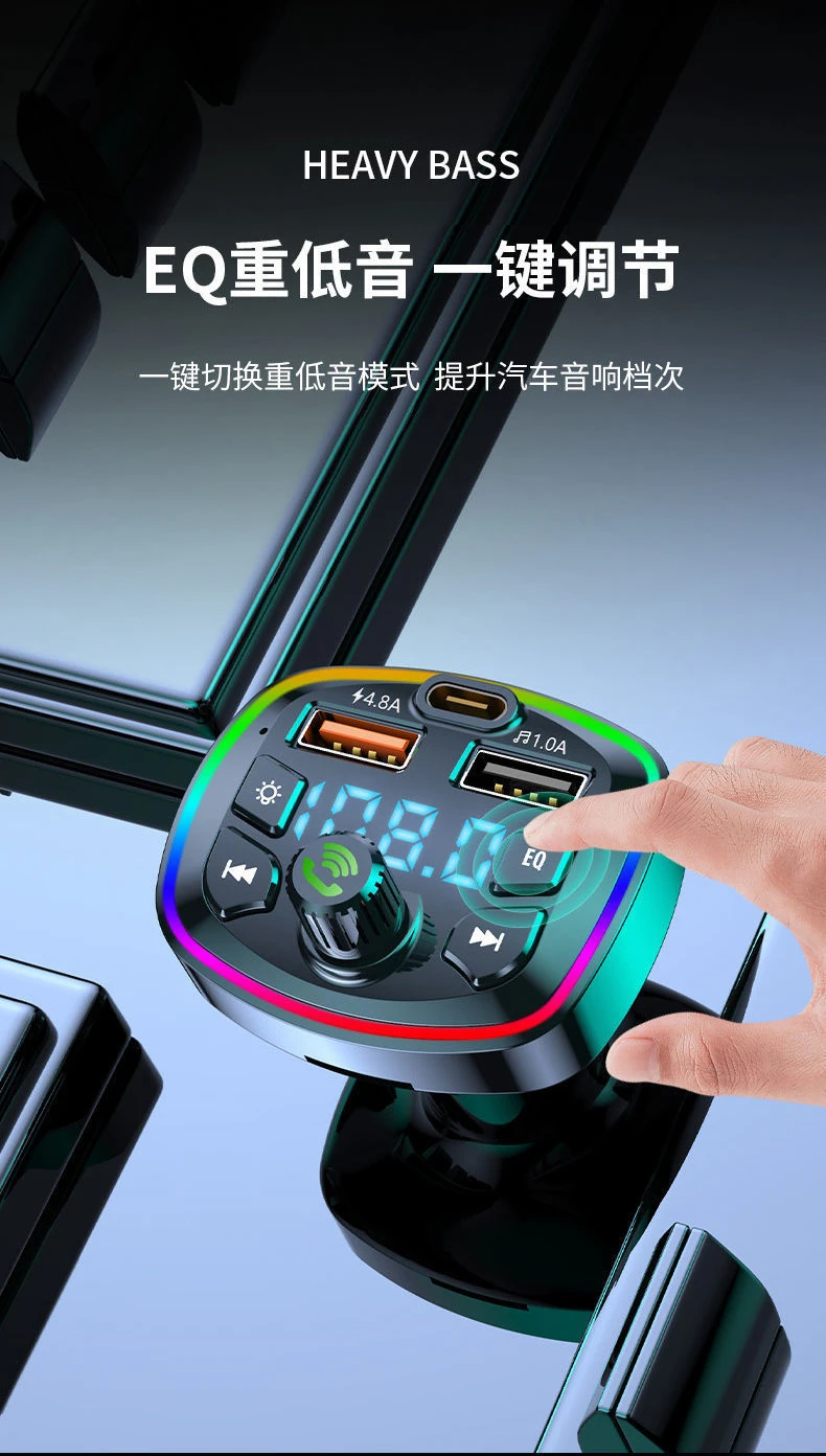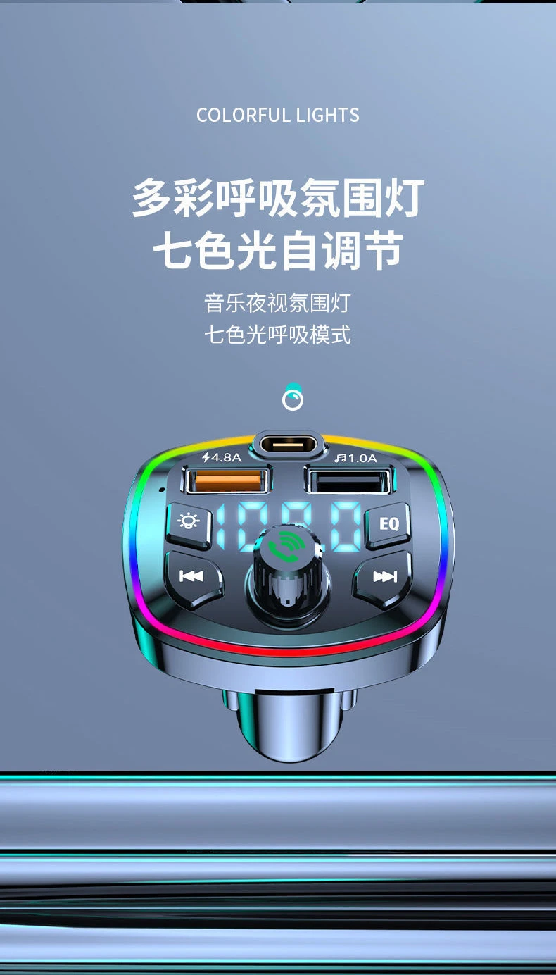 Светодиодный Bluetooth fm-передатчик с подсветкой, Автомобильный MP3 TF/U дисковый плеер, автомобильный комплект громкой связи, адаптер, двойной USB 4.2A + PD Type C, быстрое зарядное устройство