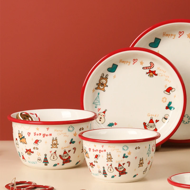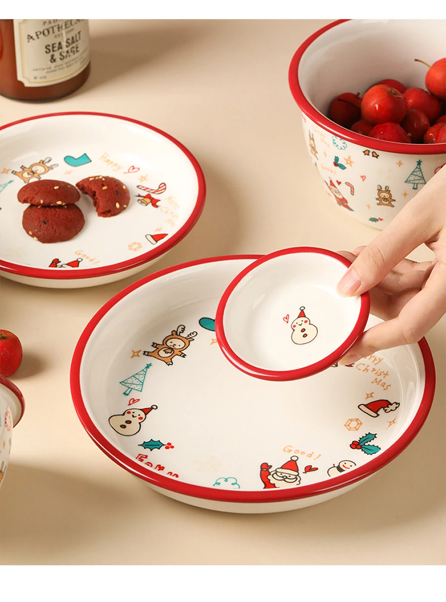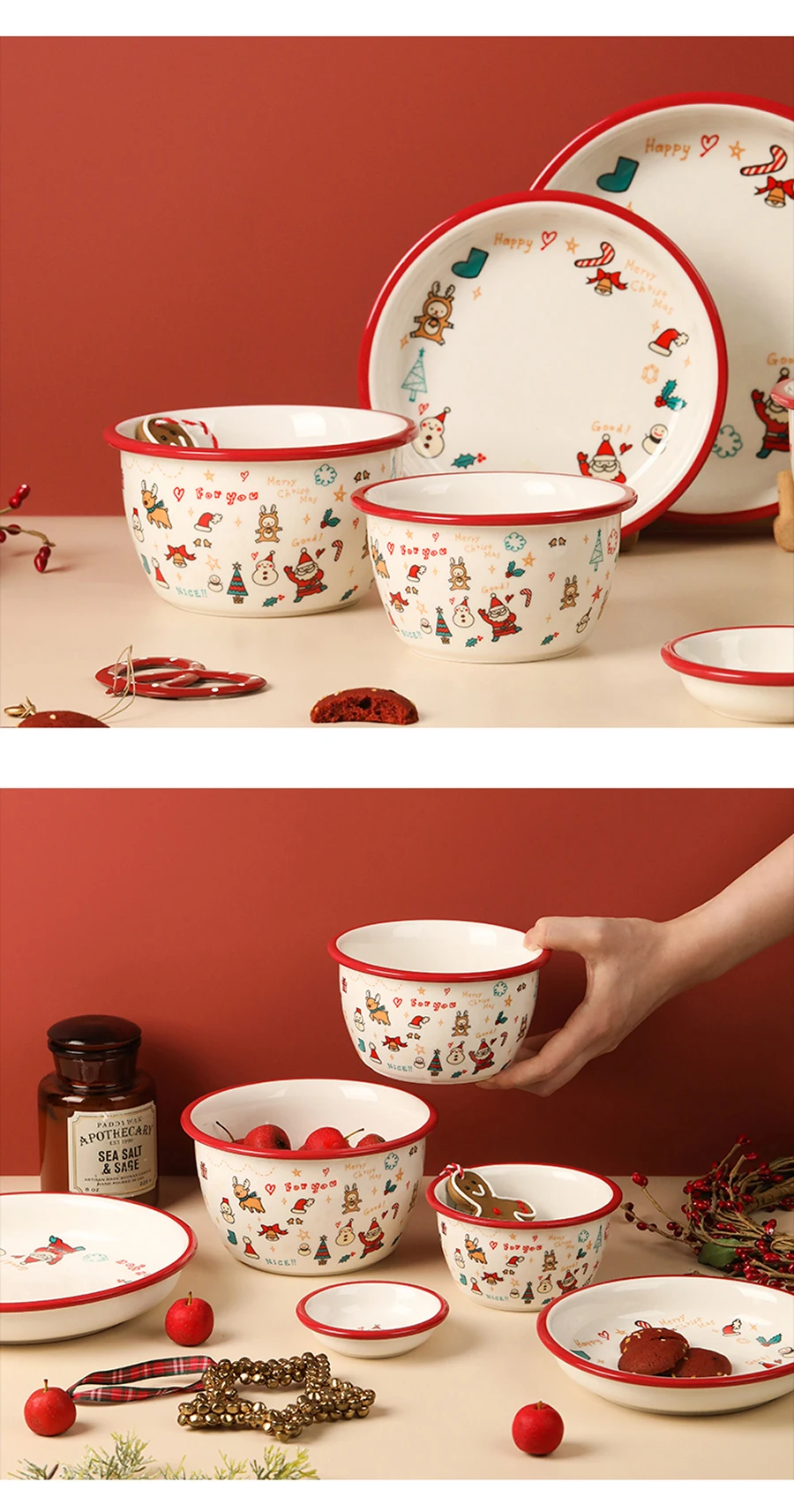 Рождественская Посуда Керамическая пиала для риса тарелка посуда мультфильм обеденные тарелки украшение дома фарфоровые кухонные принадлежности Салатница