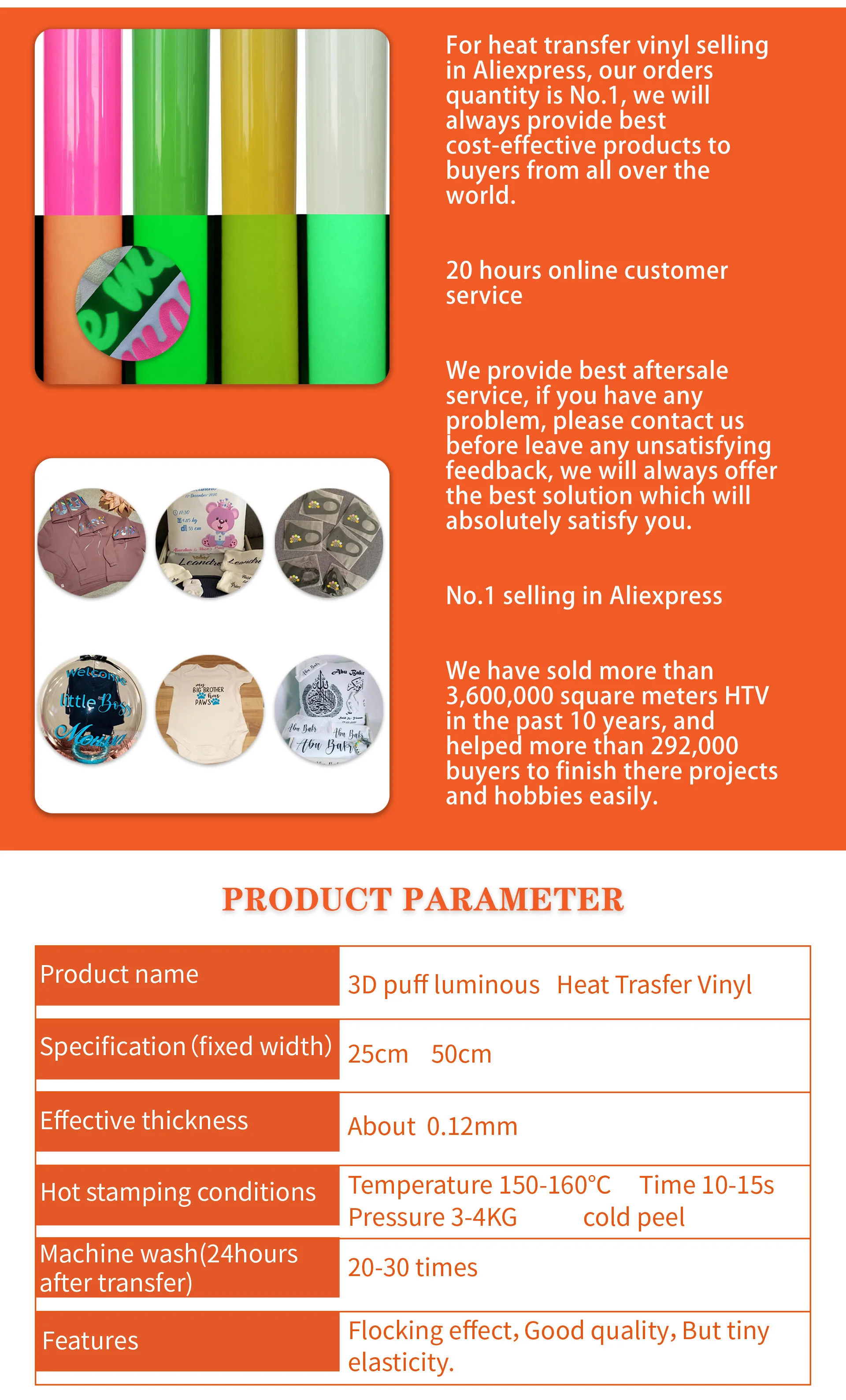 Попробуйте наш новый HT слоеный винил теплопередачи для 3D мягкого слоеного вида! Предлагая белый и черный и другие варианты цвета, этот винил затягивается после теплового нажатия на вашу одежду. Будьте так же креативны, как вы можете быть с этим веселым, инновационным винилом! Применение-плоттер вырезанный желаемый дизайн на слой горячего расплава-сорвать нежелательный материал-поместите его на ткань-нажмите на среднюю прессу ure-Снимите защитный носитель на горячую кожуру Спецификация толщины: 130 микрон (до), 500 микрон (после) температура: 320 °F ~ 329 °F (160 °C ~ 165 °C) Пожалуйста, убедитесь, что сначала проверьте температуру из-за термочувствительности материала. Давление: среднее время: 8-10 секунд Настройка резки: 45 градусов наносить на: хлопок, полиэфир без покрытия, смесь из хлопка и полиэстера без нейлона