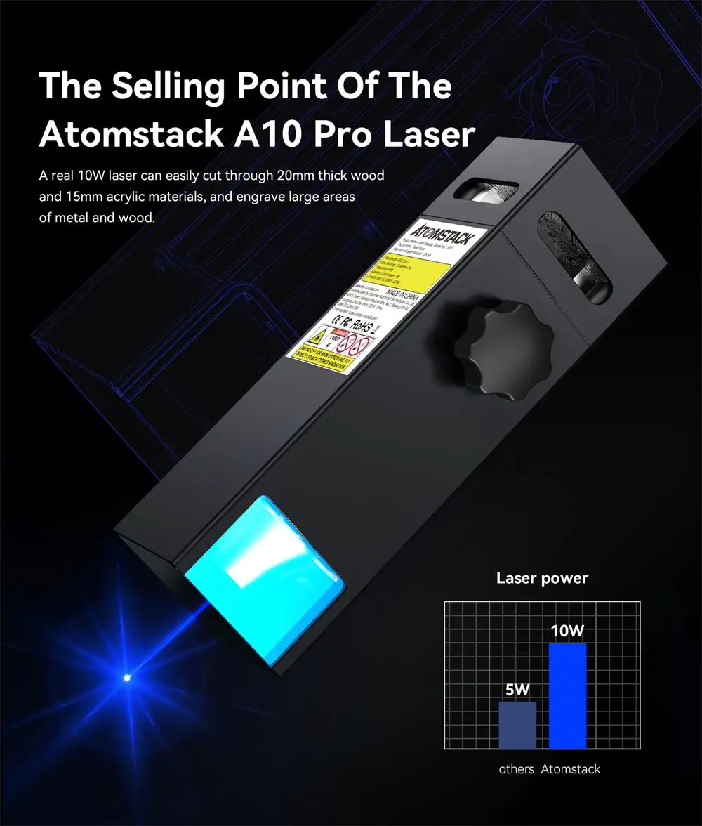 В: Новый лазер ATOMSTACK A10/S10/X7 PRO 50W в описании сообщает 10W-11W, не будет ли это 50W?