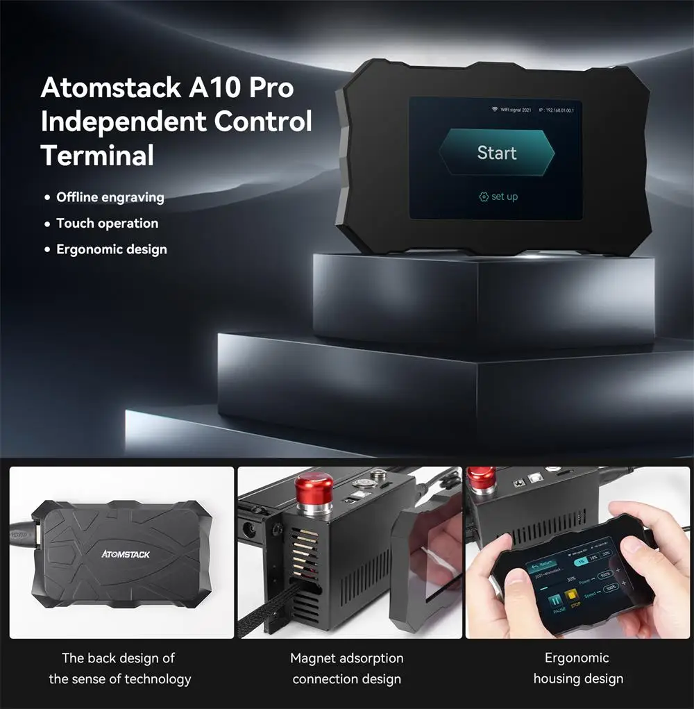 9. Поддержка автономной гравировки:A10 PRO настраивает панель управления терминалом, поддерживает автономную гравировку, вы можете выполнять гравировальную работу в любое время и в любом месте, не ограничиваясь компьютером.