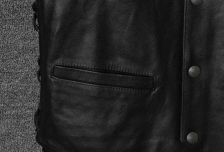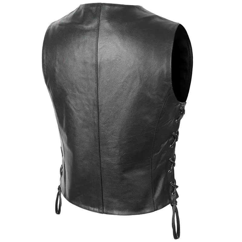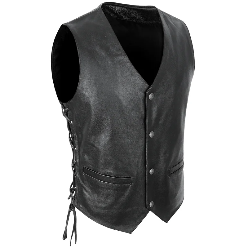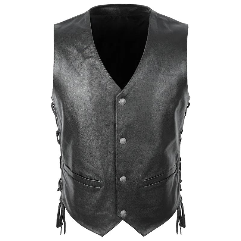 Мотоциклетный Байкерский жилет из натуральной кожи, мужской жилет из натуральной воловьей кожи без рукавов с регулируемым ремешком