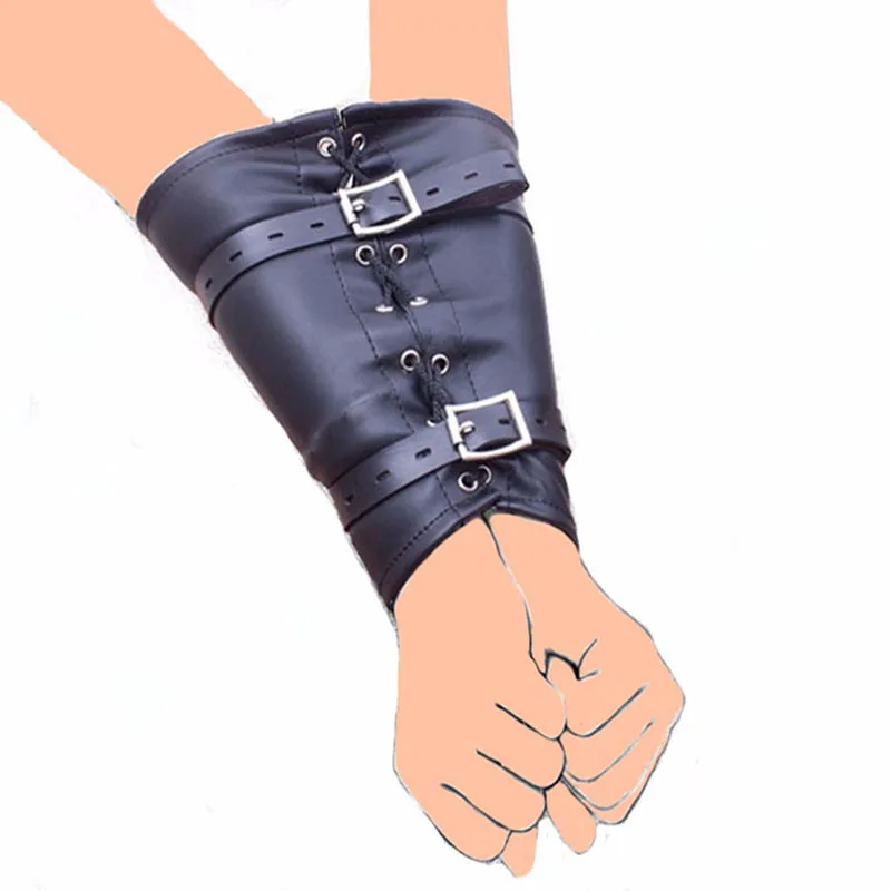 M/L Размер Регулируемый кожаный бандаж для рук, БДСМ бондаж Slave Lockable перчатка с плечевым ремнем, сзади прямая куртка, секс-игрушка