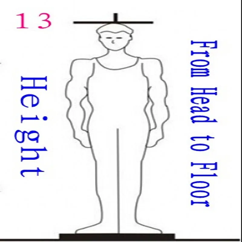 1. Шея =?2. Плечо =?3. Бицепс =?4. Запястье =?5. Грудь =?6. Живот =?7. Талия =?8. Бедра =?9. Рукав =?10. Длина куртки =?11. Длина брюк =?12. Бедра =?13. Высота =?14.Вес =?Таблица размеров