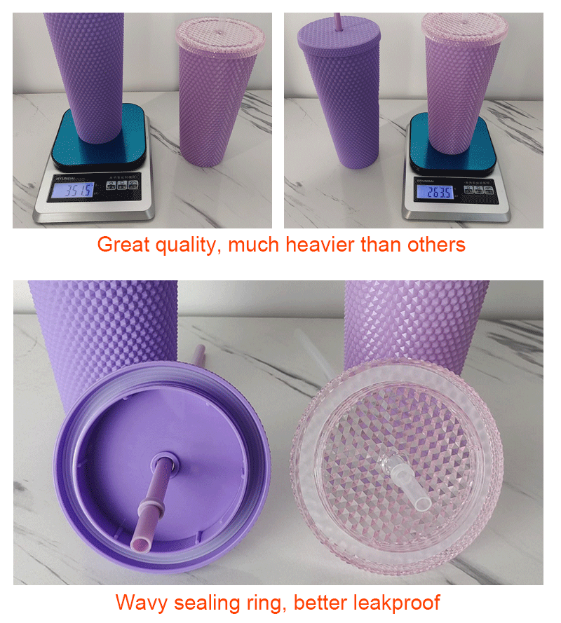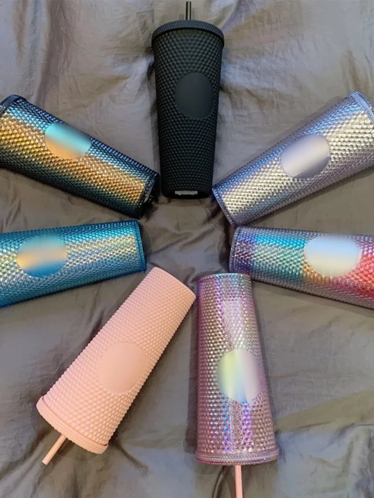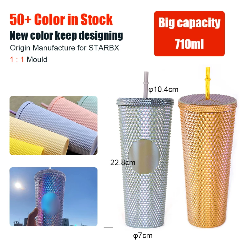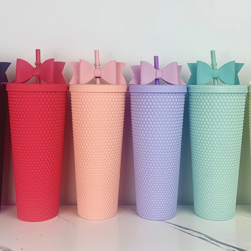 Рождественский подарок 16 унций 24 унций кофейная кружка с двойными стенками пластиковые Матовые чашки с шипами стакан с соломенной крышкой
