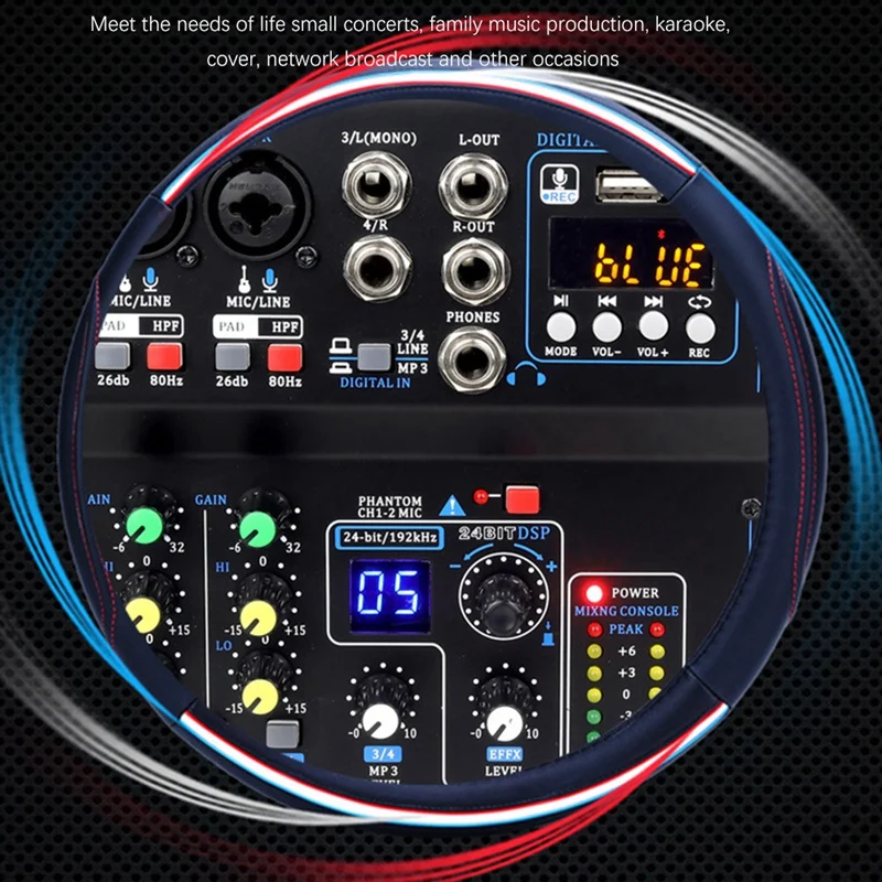 4-channel output, built-in 48V phantom power supply, wireless Bluetooth USB digital player 24bit / 192 kHz DSP effect, compact and easy to carry