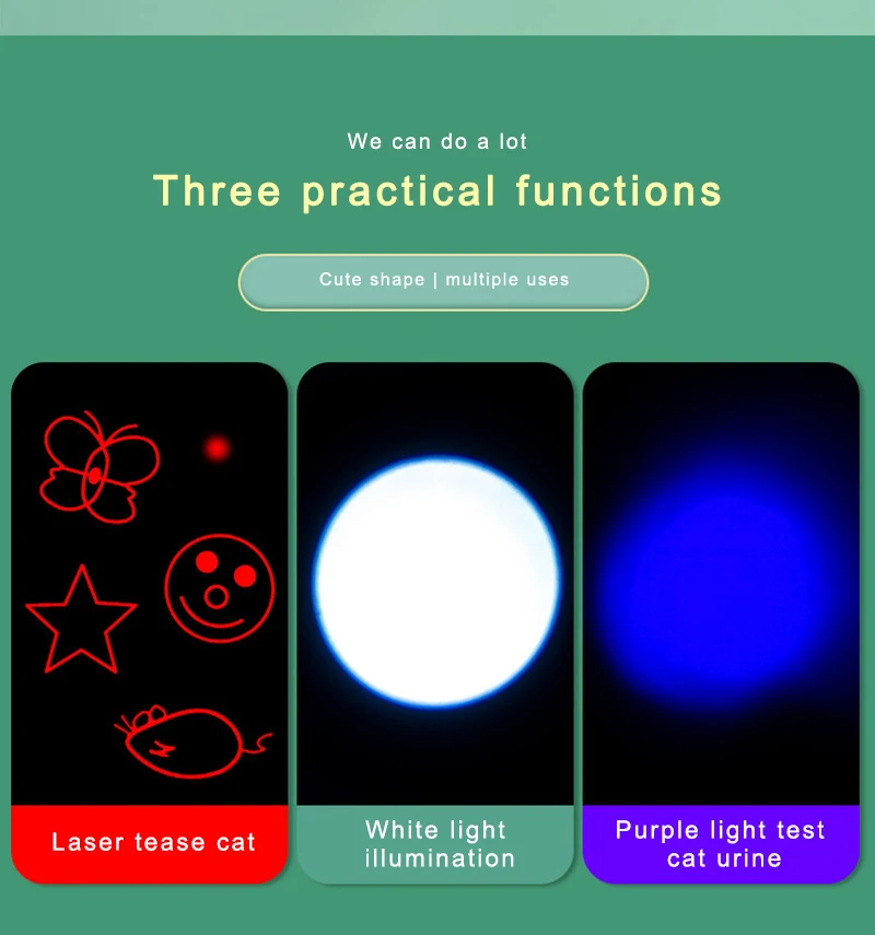 Три практические функции: лазерный поднос кошки, белый светильник, фиолетовый светильник, тест на мочу кошки