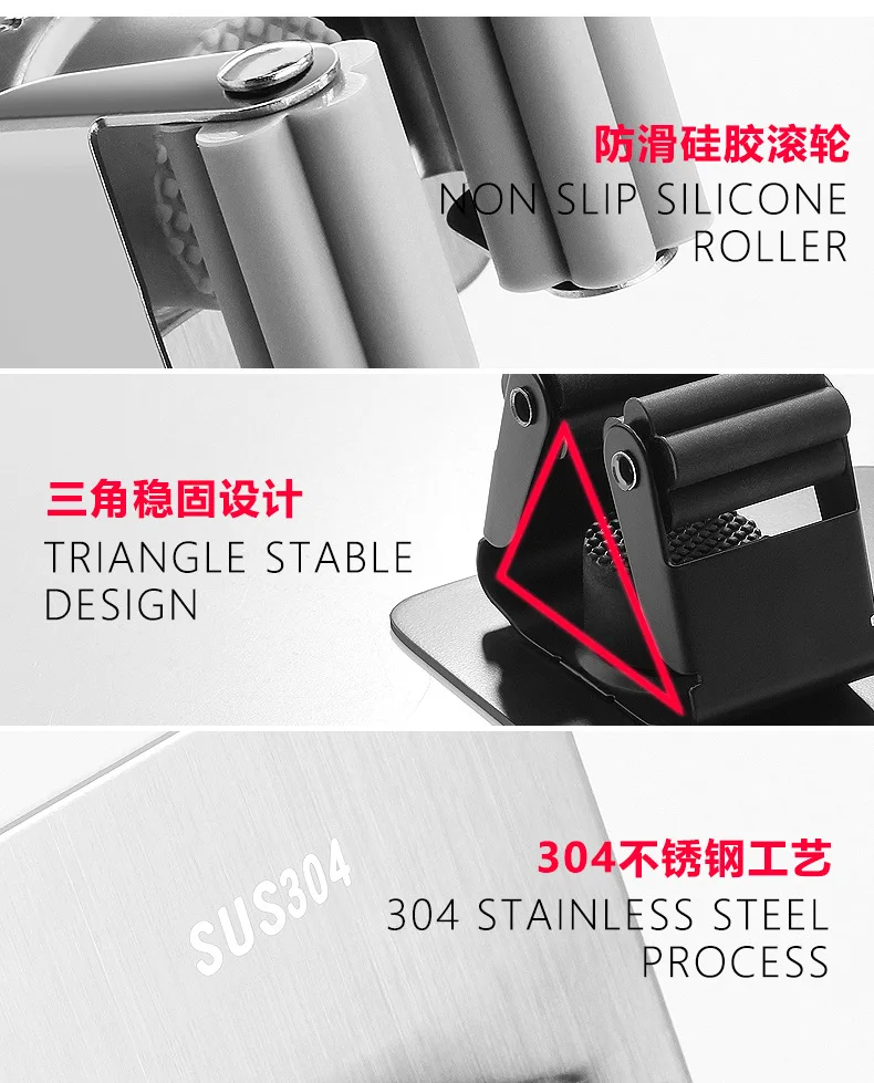 Легко снимается, поднимая ручку, вращающиеся шарики автоматически настраиваются на каждую толщину ручки и плотно сжимаются.