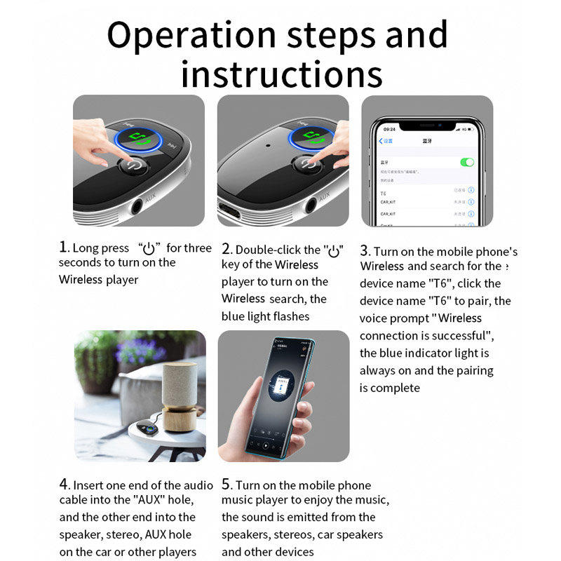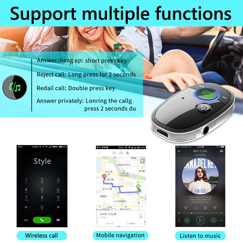 JaJaBor автомобильный bluetooth-приемник 5,0, голосовая помощь, 3,5 мм AUX адаптер, стерео музыкальный плеер, беспроводной автомобильный комплект громкой связи