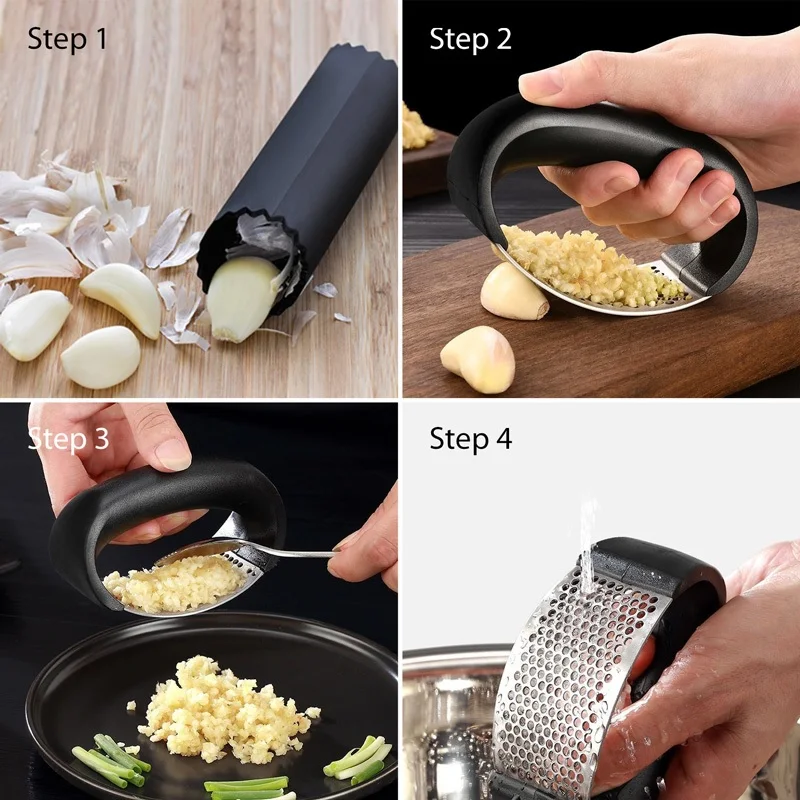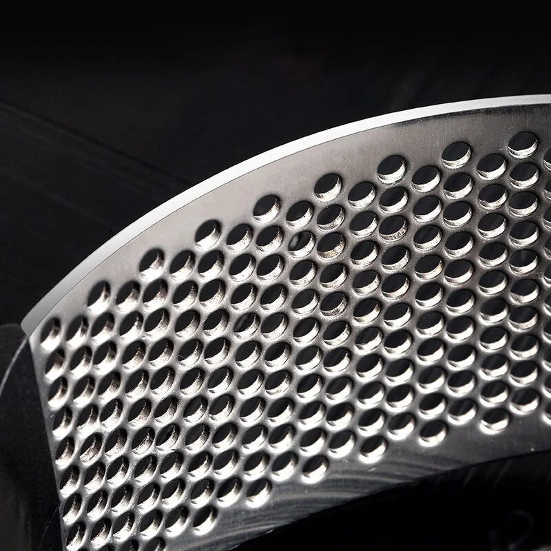 Пресс для чеснока-удобный, компактный, эргономичный инструмент для измельчения чеснока. Чеснок. Раздавить и измельчить зубы чеснока с легким движением! С помощью этого инструмента ваши руки больше не будут пахнуть чесноком! Качественный чехол из нержавеющей стали и нескользящая ручка из пластика. Легко удалить измельченный чеснок, просто потрачите с помощью ножа на внутренней стороне сетки. Чеснок легко мыть, чеснок не застревает в отверстия. Подходит для измельчения чеснока, орехов и ягод.