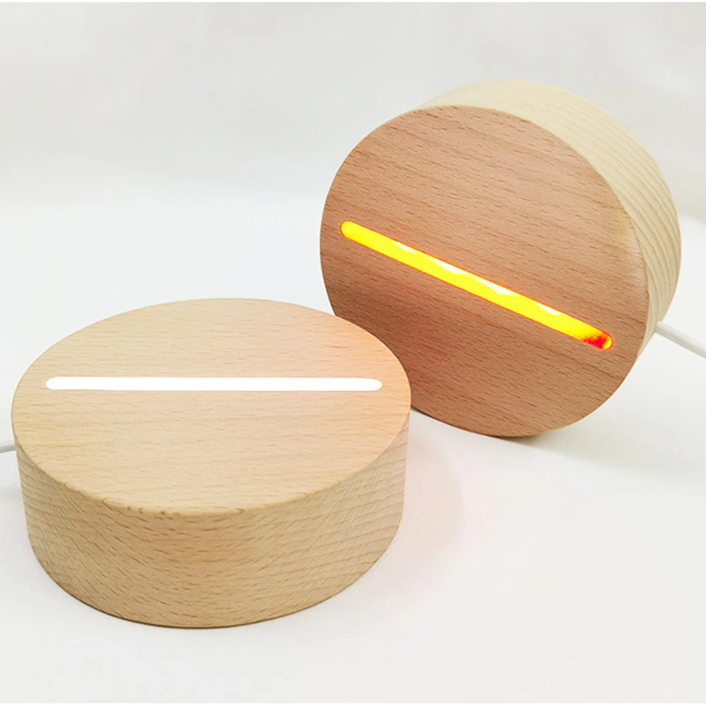 3D светодиодный светильник круглый деревянный светящийся ночной светильник светодиодный USB Перезаряжаемый Кристалл Стекло Смола художественная база для домашнего декора спальни