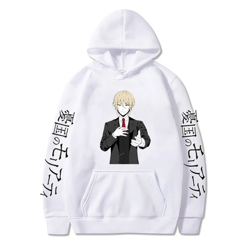 Мужская толстовка большого размера с принтом аниме Moriarty the Patriot Harajuku, белые крутые Стильные повседневные подростковые топы, модная толстовка унисекс