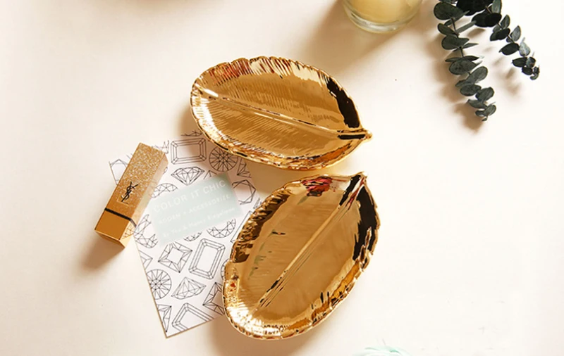 Отзывы о Золотой металлический поднос в форме листа для хранения еды демонстрации
