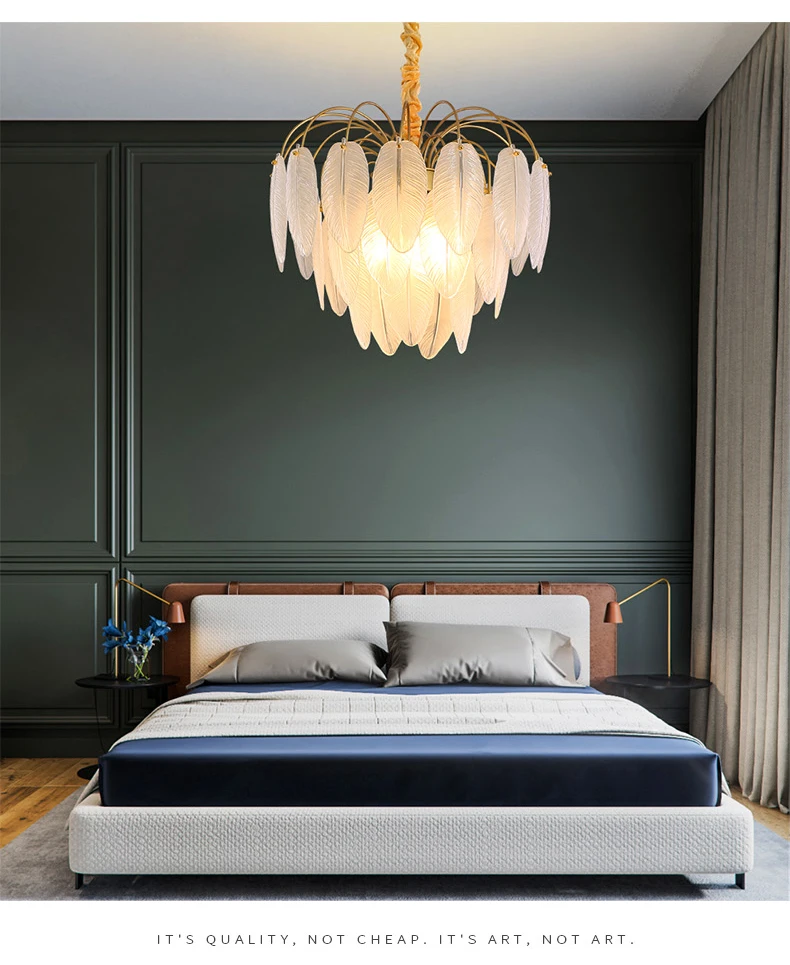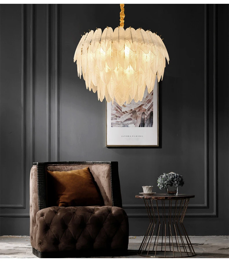 Отзывы о Современная светодиодная люстра из белого стекла с гусиным пером золотистая и