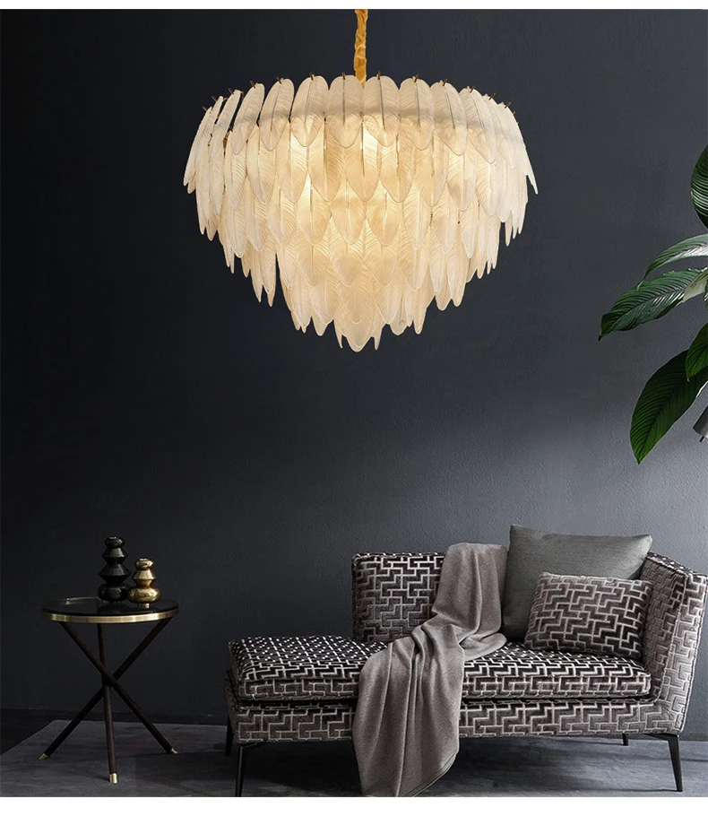 Современный светодиодный светильник из белого стекла с гусиным пером золотистого и серебряного цвета, люстра с люстрами, подвесной светильник для фойе
