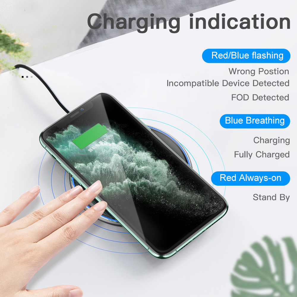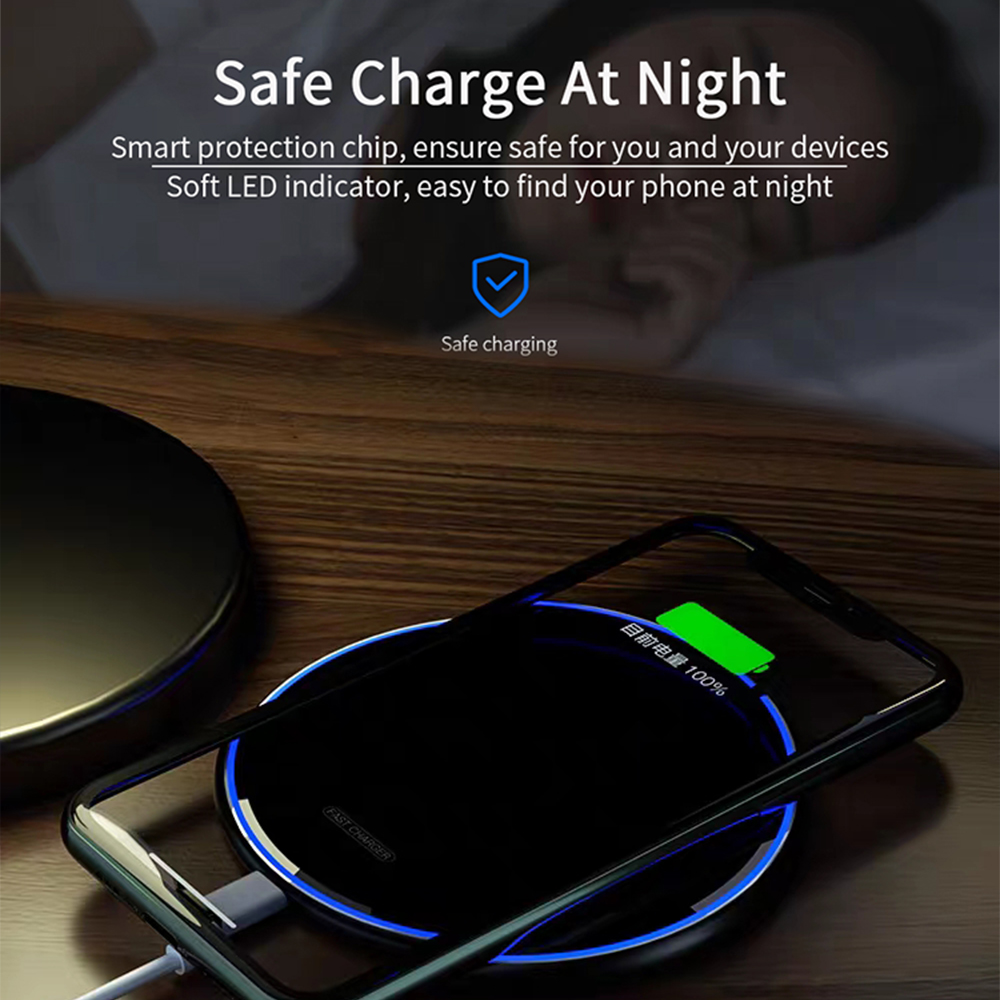 Многофункциональная Защита: дизайн в будущем делает его ультра тонким, без раздражающих звуков, без запаха пластика, даже светодиодный индикатор является низким и не вызывает никаких помех в ночное время. Противоскользящее резиновое основание предотвращает скольжение устройства во время зарядки.