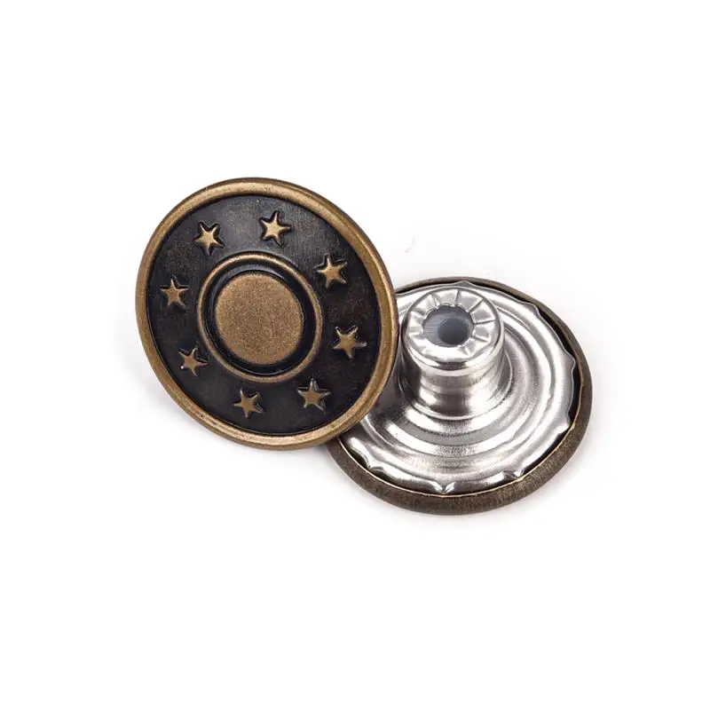 Название: джинсовые пуговицыРазмеры: поверхность Пряжка диаметр составляет около 17 мм, толщина составляет около 8,5 мм, а низ подошвы около 6 мм; диаметр шнека составляет около 7,5 мм, а длина составляет около 6,5 мм