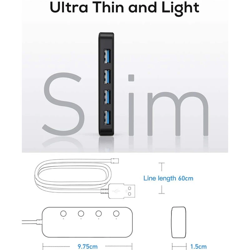 Портативный дизайн для удобства эксплуатации: концентратор данных USB 3,0-светильник, сверхтонкий, изготовлен из высококачественного алюминиевого корпуса с хорошей теплоотдачей, без программного обеспечения или драйверов, plug & play. Шнур растягивается до 60 см, что больше подходит для дома, офиса или в любом месте. Вы можете взять с собой этот usb-хаб, куда бы вы ни отправились