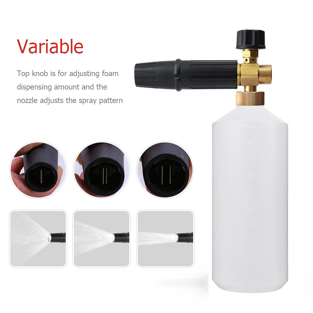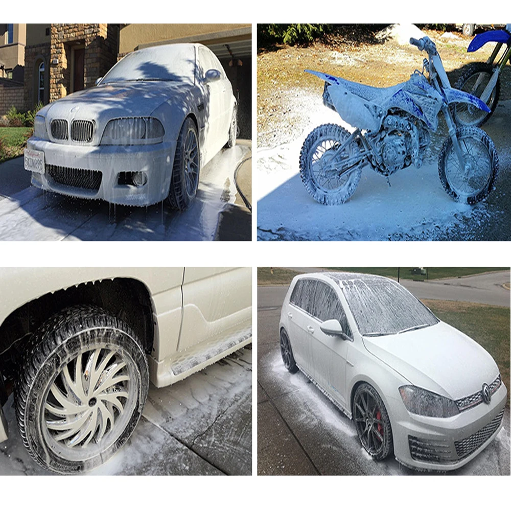 Подключите Пенную насадку к пистолету для мойки автомобиля, а затем вы можете использовать его!