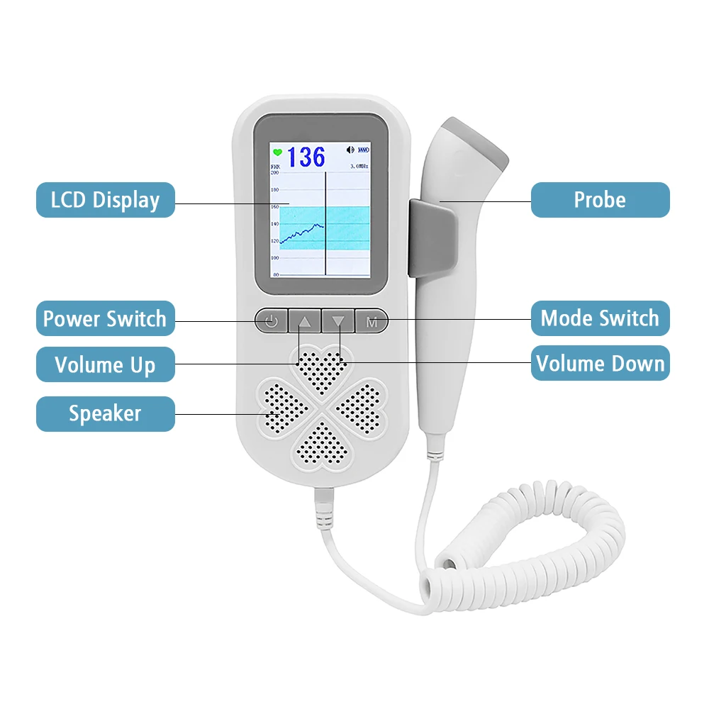 Household Doppler Fetal Monitor: A handheld ultrasound monitor for detecting the fetal heartbeat. With this household doppler fetal monitor, you can listen to the heartbeat sound of your baby anytime.