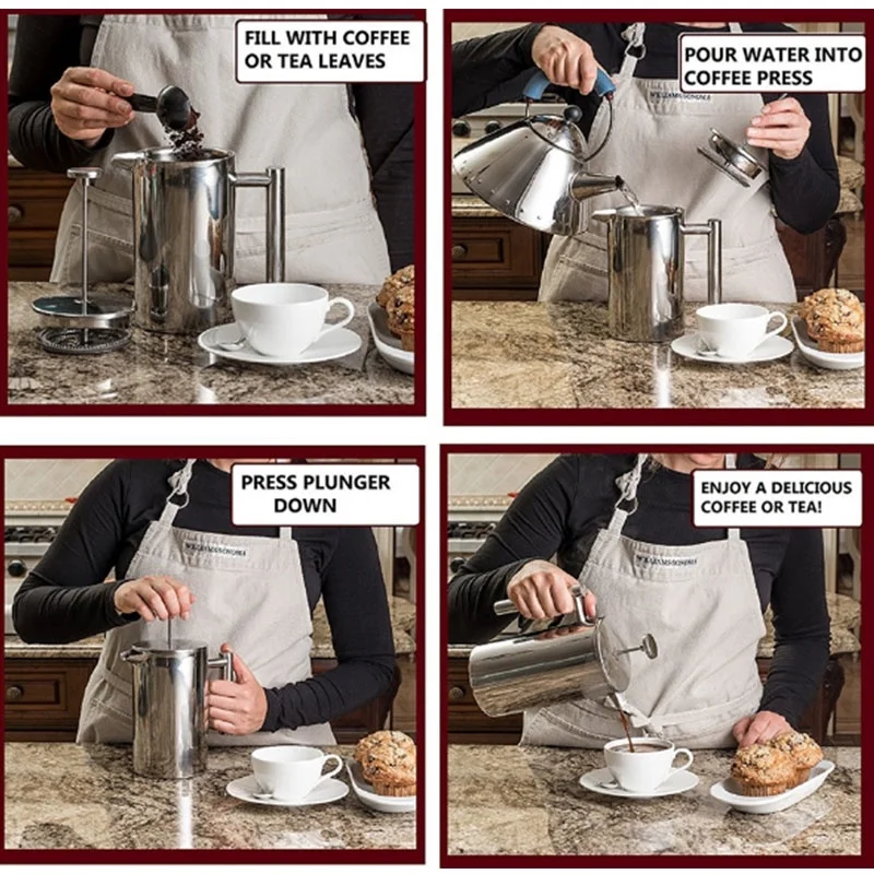 Отзывы о Кофейник французский пресс с двойными стенками Кофеварка из нержавеющей стали